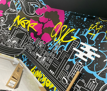 看板として窓ガラスに貼ったり、壁面に貼ってデザイン性を高めたり、キャッチーな使い方のできるシートです。